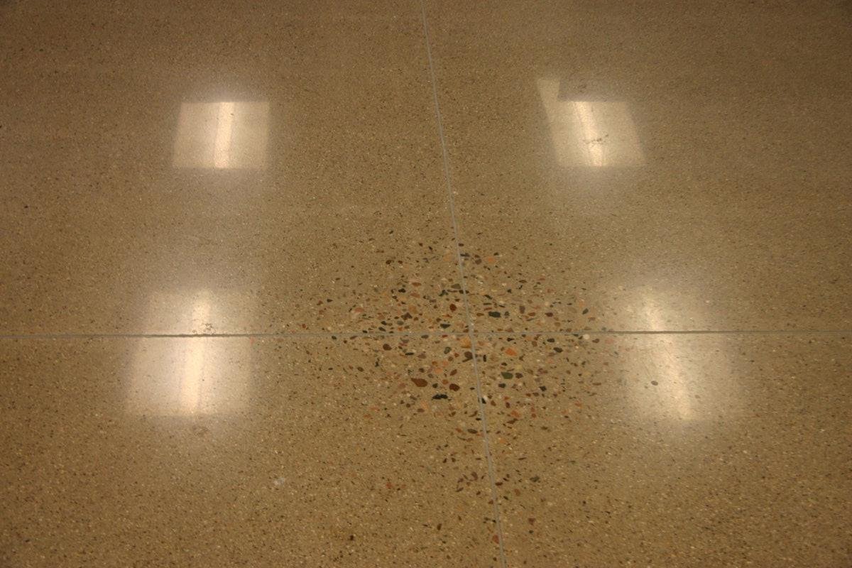 Concrete is ground smooth then sealed with a clear protective topcoat. A clean, refined look with solid stain and moisture resistance.